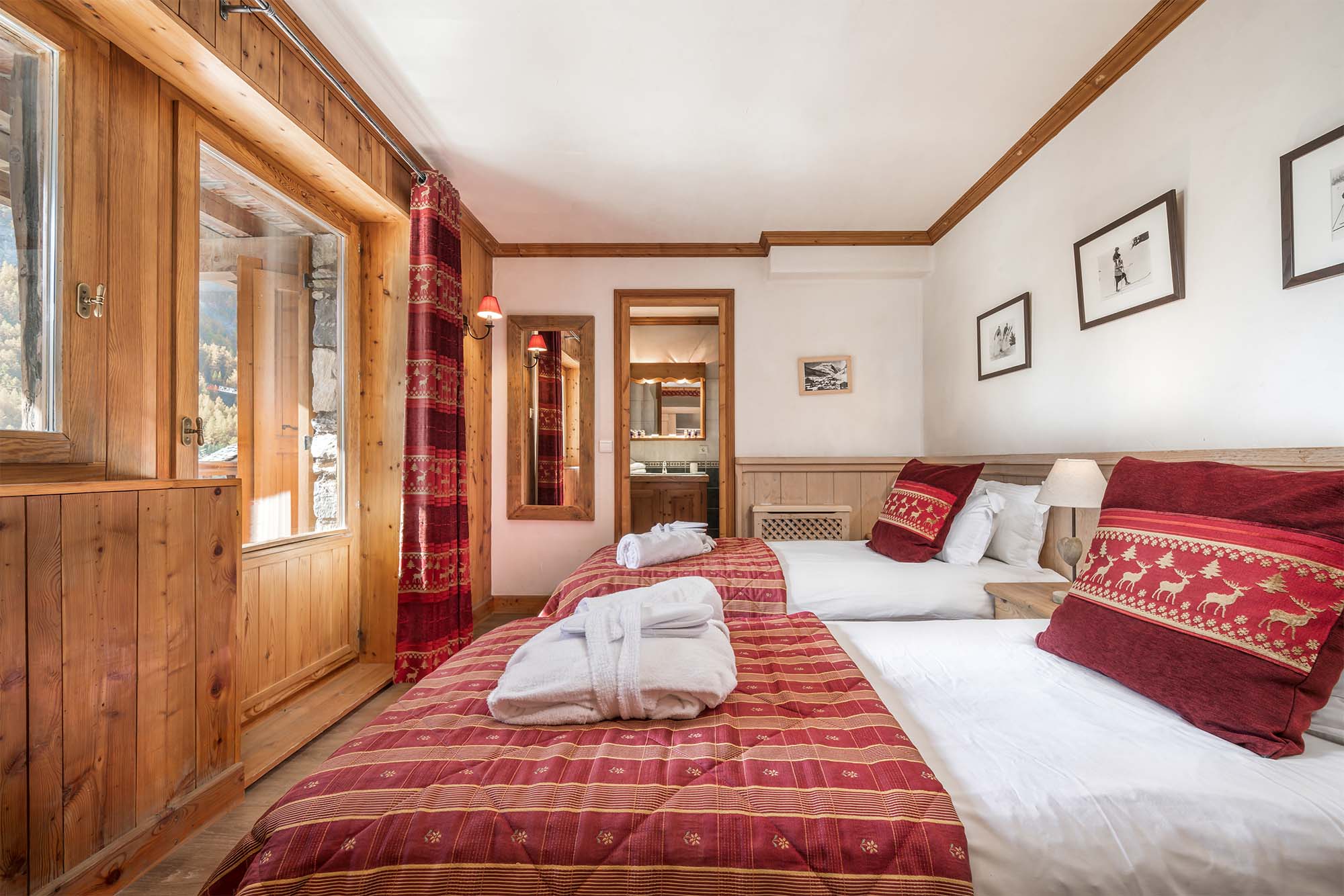 Chalet La Grande Sassiere is a charming traditional chalet which accommodates up to 12 people with its 6 bedrooms, a spacious living room with fireplace and a large jacuzzi on the terrace with a stunning view. Spread over three floors, La Grande Sassiere is a wonderful chalet for two or three families or a group of friends. There is free WI-Fi throughout the chalet, perfect if you need to work whilst away, or stream your favourite film or TV shows whilst relaxing in front of the roaring fire. Included in your stay at Chalet La Grande Sassiere is a private shuttle service for transport to and from the slopes, available every day (except arrival and departure day) between 8:30 and 10am and between 4pm and 6pm. The service is limited to 2 trips per chalet each morning and evening. If you drive to Val d’Isère, there is space for two cars to park on the driveway right outside the chalet.